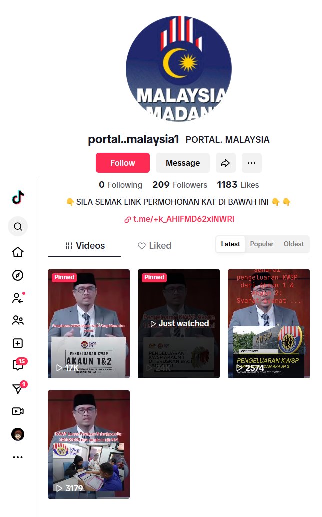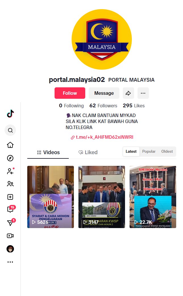 AWAS! TAKTIK SCAMMER: claim bantuan, sila klik link melalui TikTok